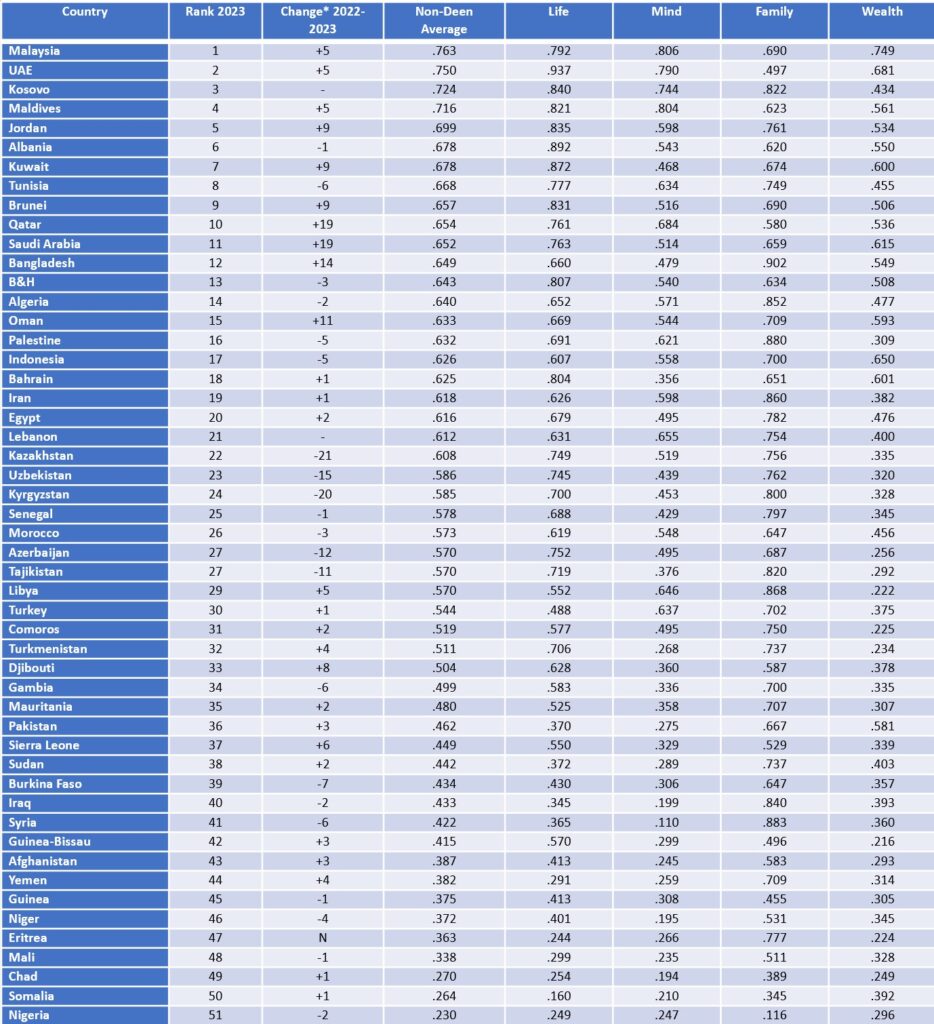 Table 1. Overall Country Rankings for 2023 Islamic Well-Being Index 4.0