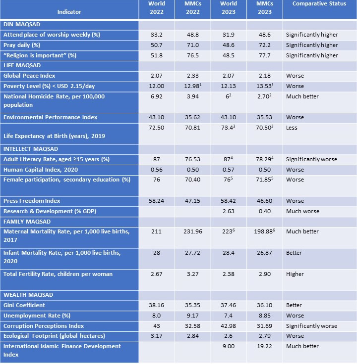 Table 3. Comparing Vital Indicators for Islamic Well-Being: 2022 and 2023 MMC vs World Averages