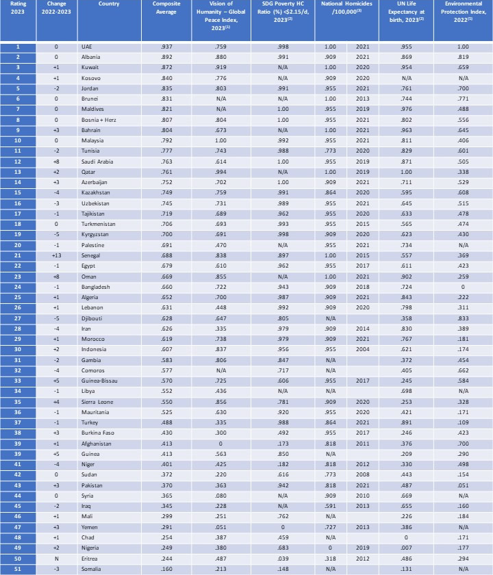 Table 2. 2023 Country Rankings for the Non-Deen Maqasid (Objectives)